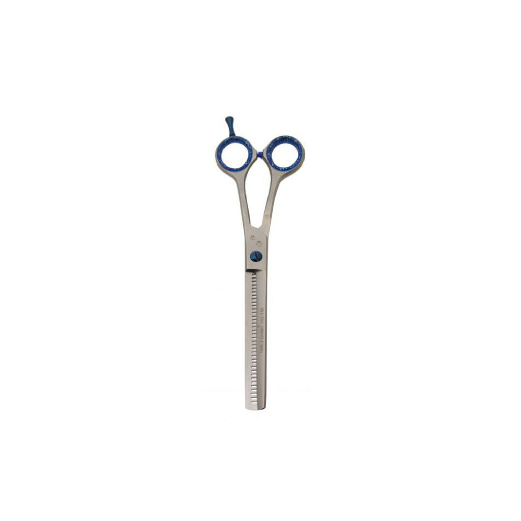 Een effileerschaar voor honden is onmisbaar voor het uitdunnen en modelleren van de vacht. Deze speciale scharen zorgen voor vloeiende overgangen zonder zichtbare kniplijnen — perfect voor een natuurlijk en professioneel resultaat.